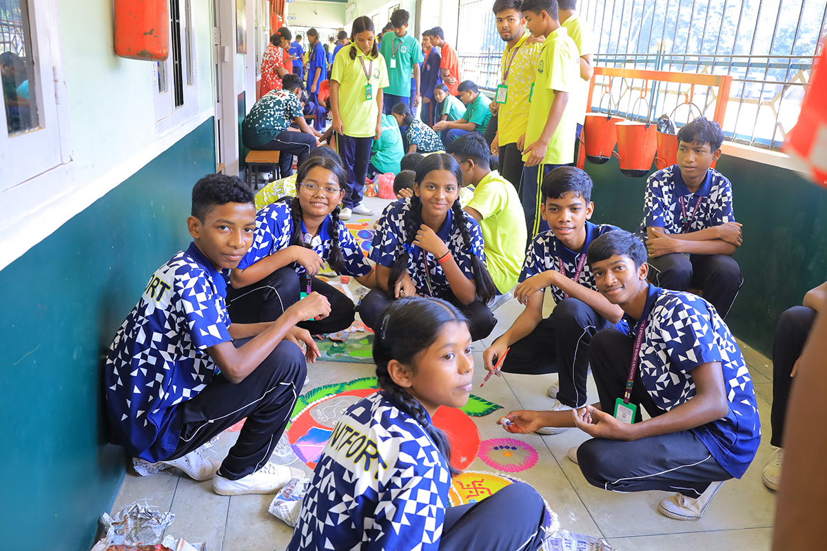 Today our school Students Celebrated Diwali. A Rangoli Competition is organized to bring out the competitive spirit the students were divided into various groups. The competition was class wise between different houses.